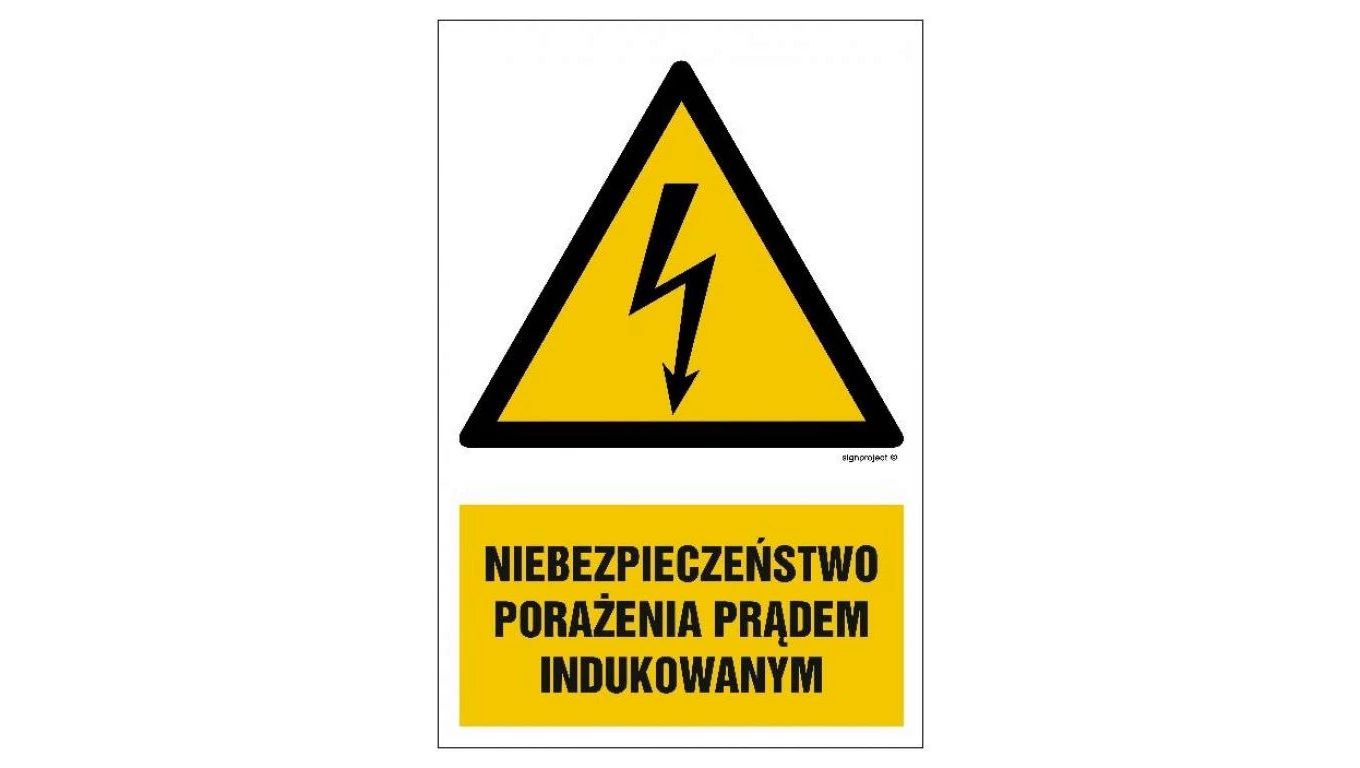 ZNAK - HA013 Niebezpieczeństwo porażenia prądem indukowanym 30 x 45 cm FN - Folia samoprzylepna