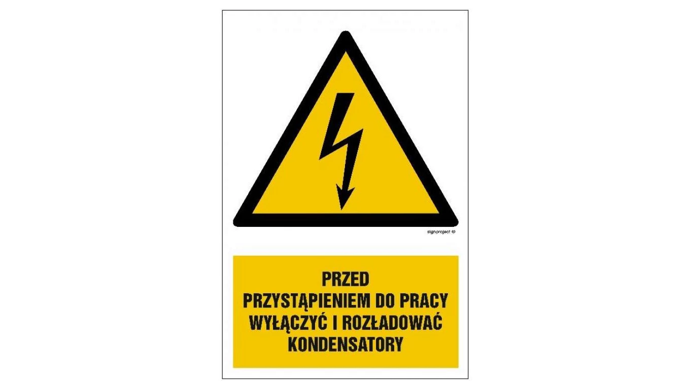 ZNAK - HA018 Przed przystąpieniem do pracy wyłączyć i rozładować kondensatory 50 x 75 cm FN - Folia samoprzylepna