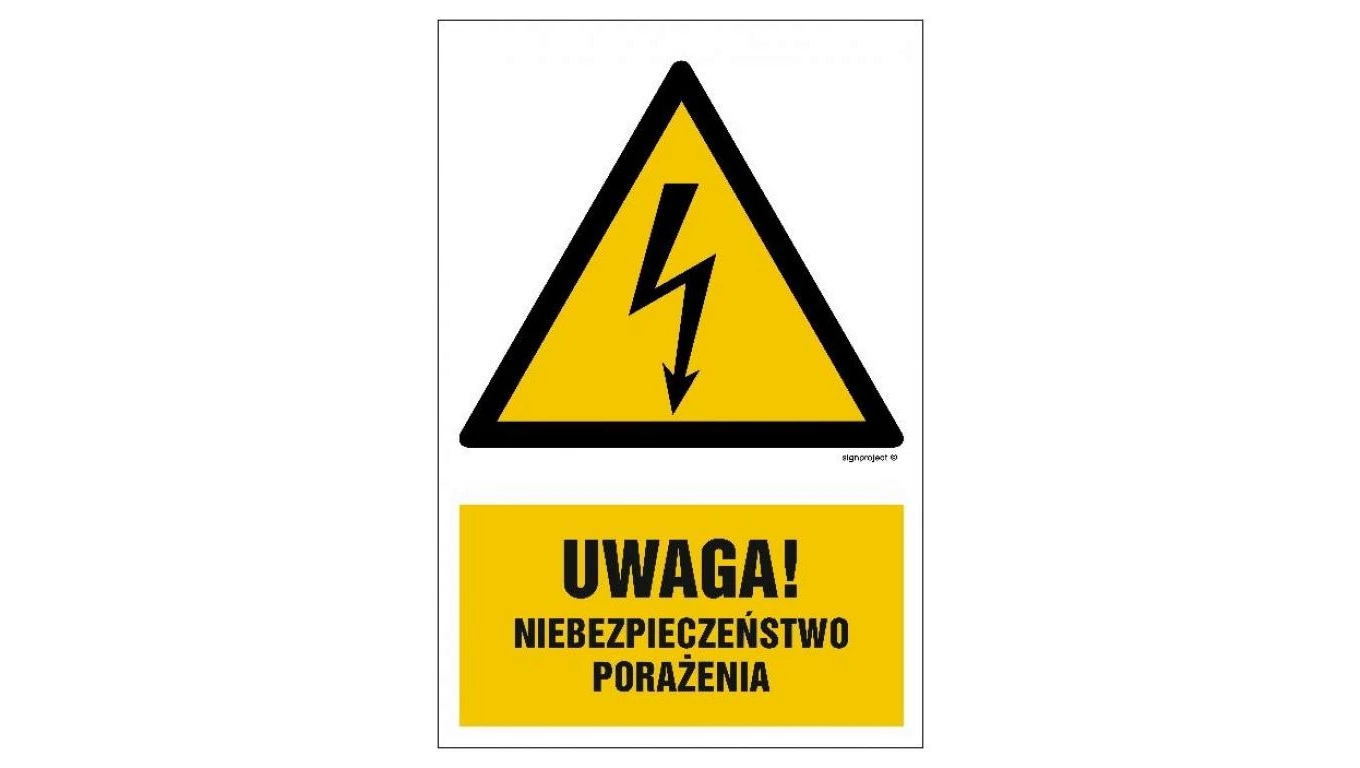 ZNAK - HA019 Uwaga niebezpieczeństwo porażenia 15 x 22,5 cm FN - Folia samoprzylepna