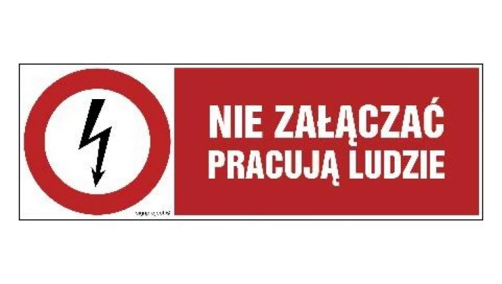 ZNAK - HD002 Nie załączać pracują ludzie 15 x 5 cm PN - Płyta 1mm