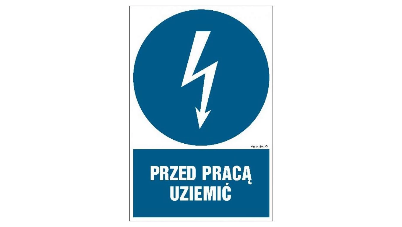 ZNAK - HE005 Przed pracą uziemić 7,5 x 10 cm FN - Folia samoprzylepna
