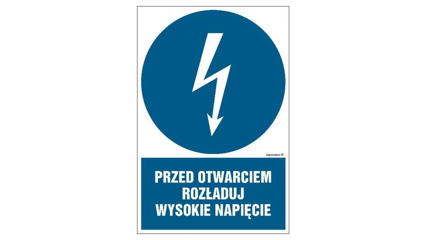 ZNAK - HE006 Przed otwarciem rozładuj wysokie napięcie 70 x 105 cm FN - Folia samoprzylepna
