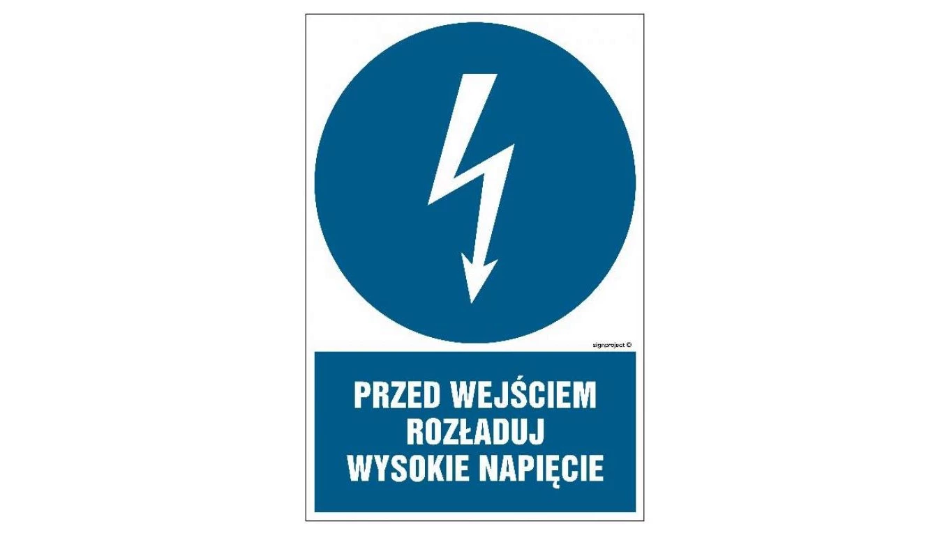 ZNAK - HE006 Przed otwarciem rozładuj wysokie napięcie 70 x 105 cm PN - Płyta 1mm