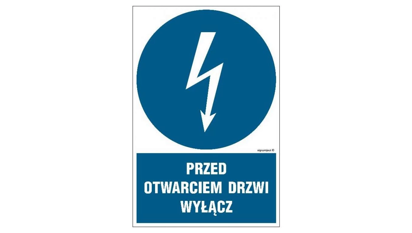 ZNAK - HE019 Przed otwarciem drzwi wyłącz 35 x 52,5 cm FN - Folia samoprzylepna