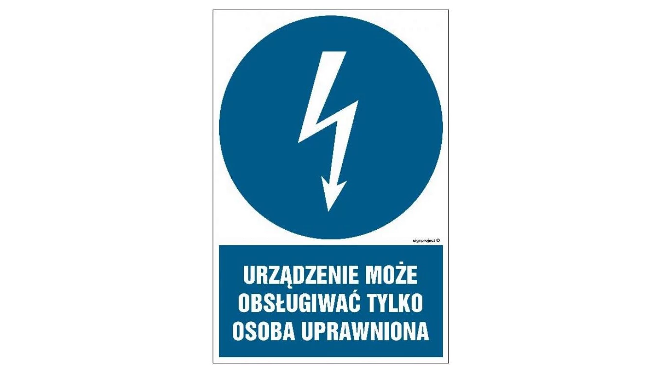 ZNAK - HE020 Urządzenie może obsługiwać tylko osoba uprawniona 50 x 75 cm PN - Płyta 1mm