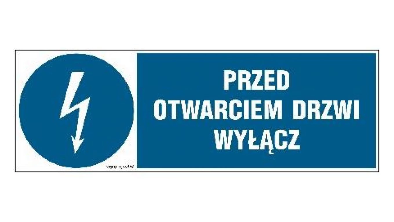 ZNAK - HF019 Przed otwarciem drzwi wyłącz 20 x 6,7 cm PN - Płyta 1mm