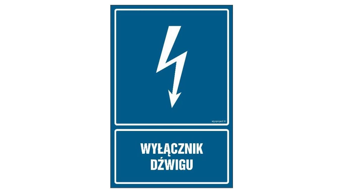 ZNAK - HG025 Wyłącznik dźwigu 15 x 22,5 cm FN - Folia samoprzylepna