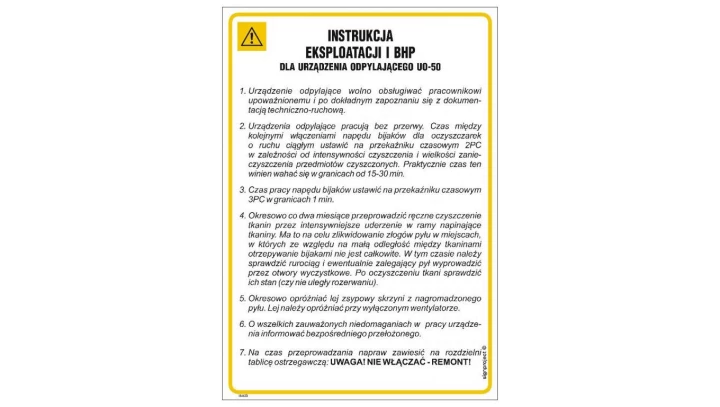 ZNAK - IAA23 Instrukcja eksploatacji i BHP dla urządzenia odpylającego UO-51 24,5 x 35 cm HN - Płyta TD-flex 0,4mm