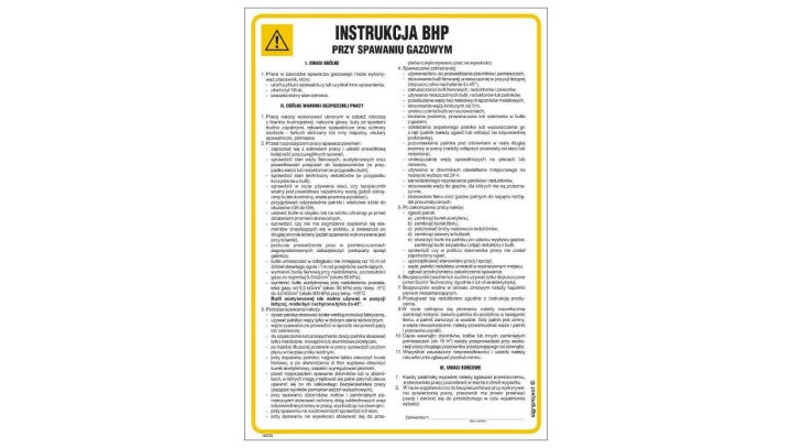 ZNAK - IAC23 Instrukcja BHP przy spawaniu gazowym 24,5 x 35 cm HN - Płyta TD-flex 0,4mm