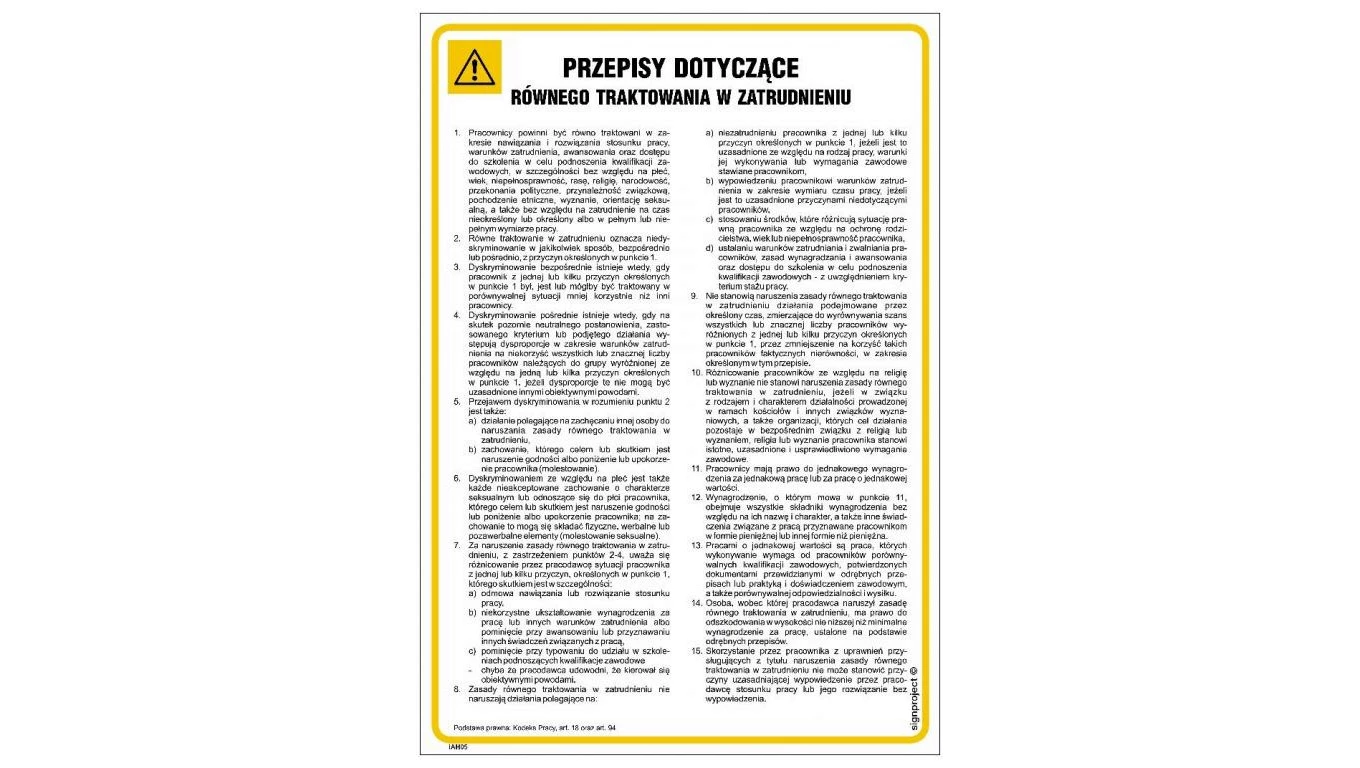 ZNAK - IAH05 Przepisy dotyczące równego traktowania w zatrudnieniu 24,5 x 35 cm HN - Płyta TD-flex 0,4mm