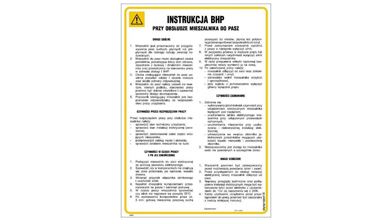 ZNAK - IAI02 Instrukcja BHP przy obsłudze mieszalnika do pasz 24,5 x 35 cm FN - Folia samoprzylepna