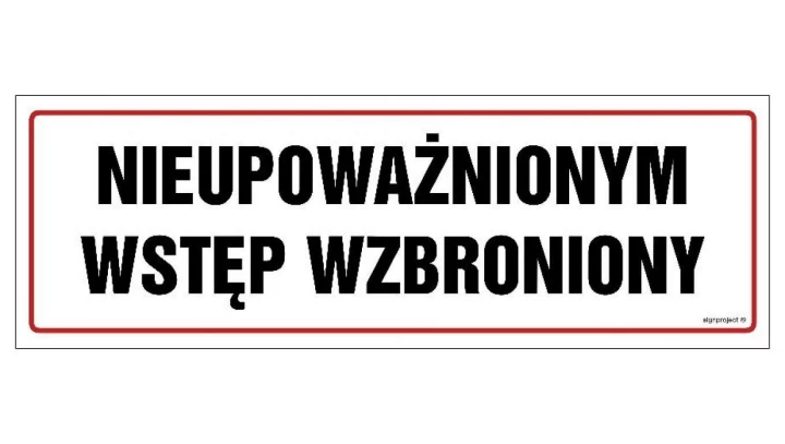 ZNAK - NC001 Nieupoważnionym wstęp wzbroniony 75 x 25 cm PN - Płyta 1mm