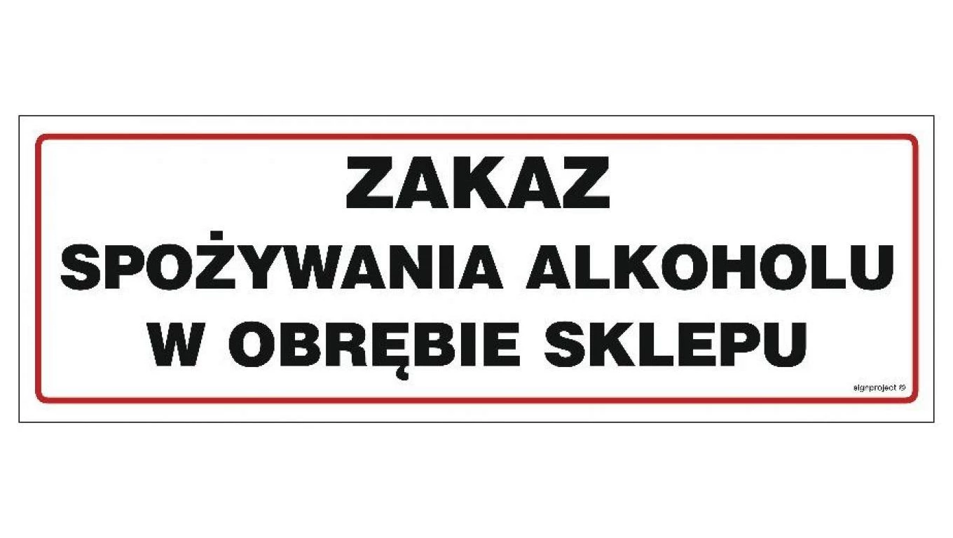ZNAK - NC015 Zakaz spożywania alkoholu w obrębie sklepu 30 x 10 cm FN - Folia samoprzylepna