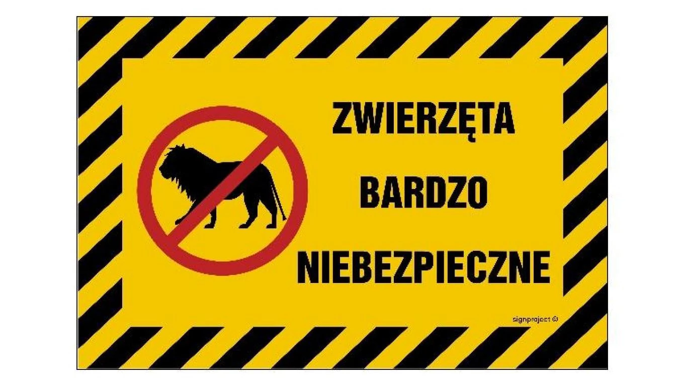 ZNAK - NC020 Zwierzęta bardzo niebezpieczne 45 x 30 cm FN - Folia samoprzylepna