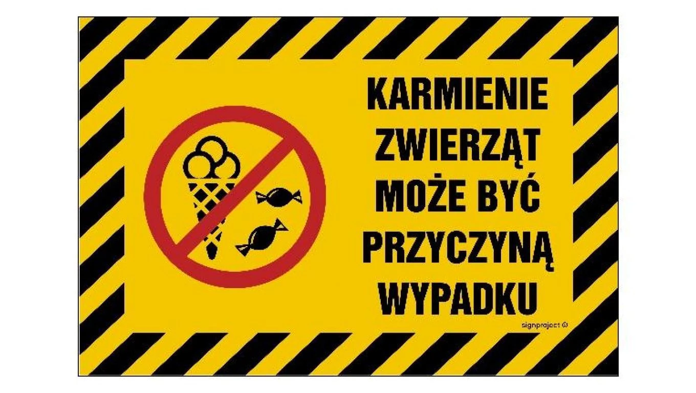 ZNAK - NC021 Karmienie zwierząt może być przyczyną wypadku 30 x 20 cm FN - Folia samoprzylepna