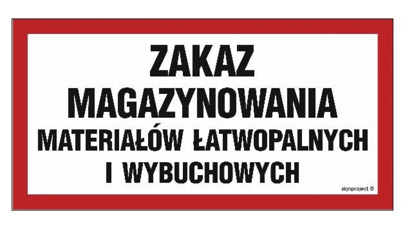 ZNAK - NC033 Zakaz magazynowania materiałów łatwopalnych i wybuchowych 40 x 20 cm PN - Płyta 1mm