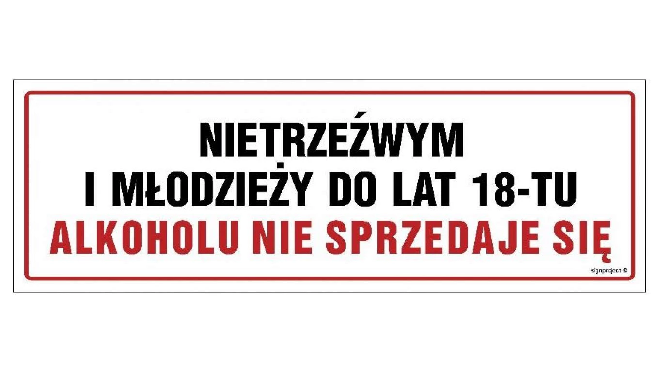 ZNAK - NC047 Nietrzeźwym i młodzieży do lat 18-tu alkoholu nie sprzedaje się 75 x 25 cm FN - Folia samoprzylepna