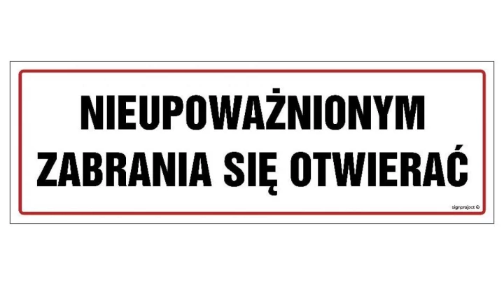 ZNAK - NC055 Nieupoważnionym zabrania się otwierać 30 x 10 cm FN - Folia samoprzylepna