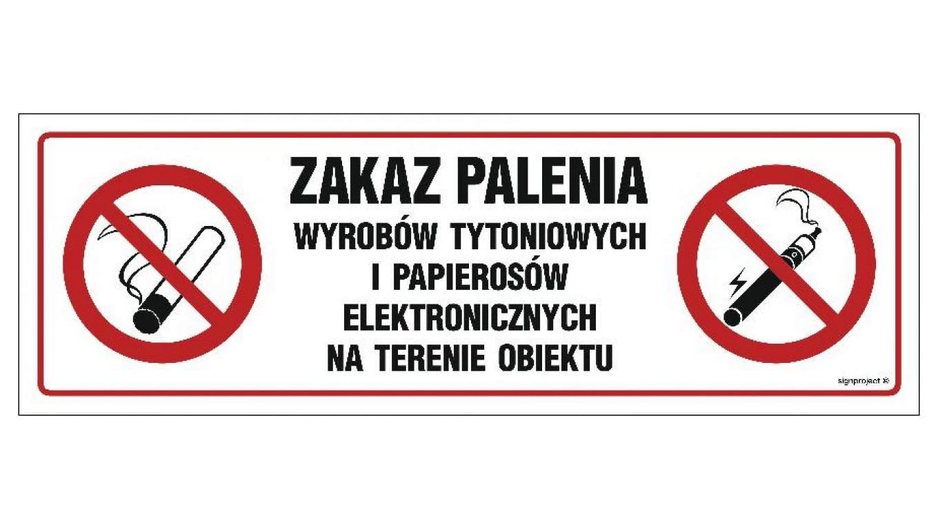 ZNAK - NC088 Zakaz palenia wyrobów tytoniowych i papierosów elektronicznych na terenie obiektu 60 x 20 cm PN - Płyta 1mm