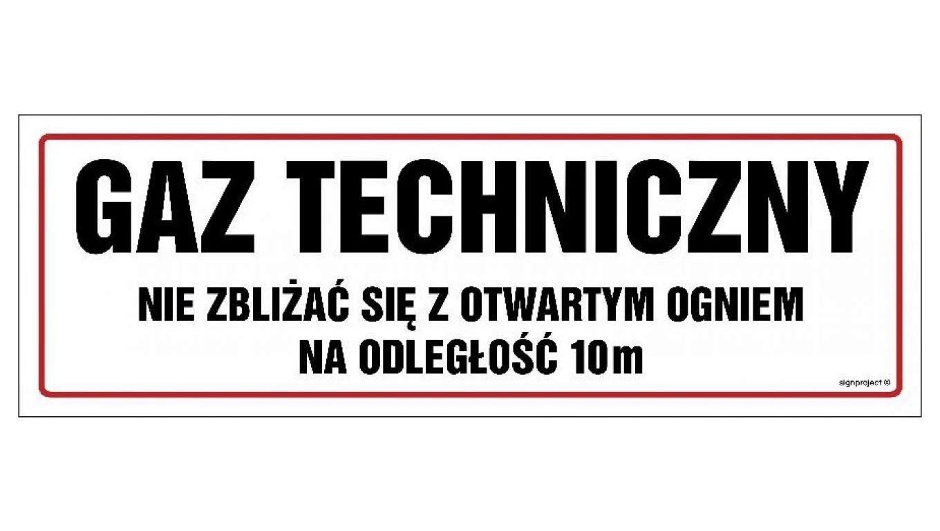 ZNAK - NC102 Gaz techniczny. Nie zbliżać się z otwartym ogniem 75 x 25 cm FN - Folia samoprzylepna