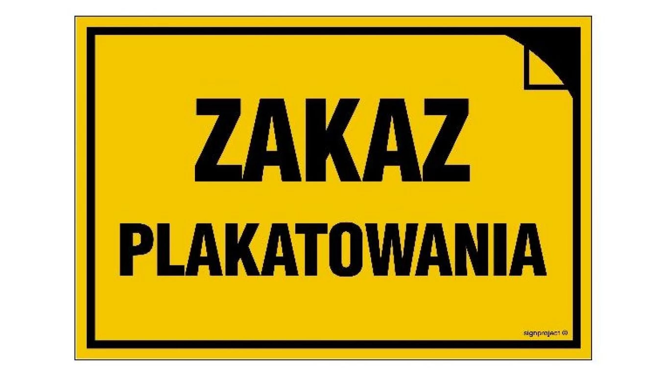 ZNAK - NC116 Zakaz plakatowania 20 x 13,3 cm BN - Płyta żółta 0,6mm