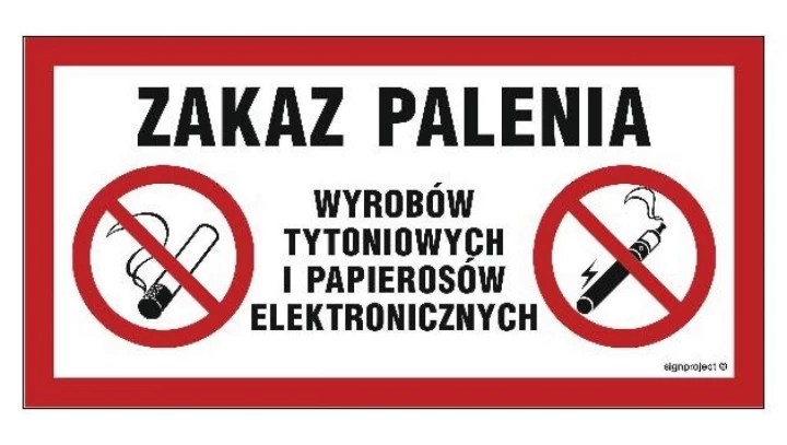 ZNAK - NC123 Zakaz palenia wyrobów tytoniowych i papierosów elektronicznych 60 x 30 cm PN - Płyta 1mm