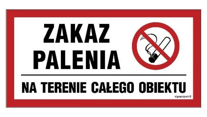 ZNAK - NC127 Zakaz palenia na terenie całego obiektu 40 x 20 cm FN - Folia samoprzylepna