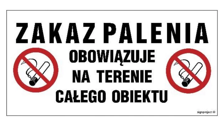 ZNAK - NC129 Zakaz palenia obowiązuje na terenie całego obiektu 20 x 10 cm FN - Folia samoprzylepna