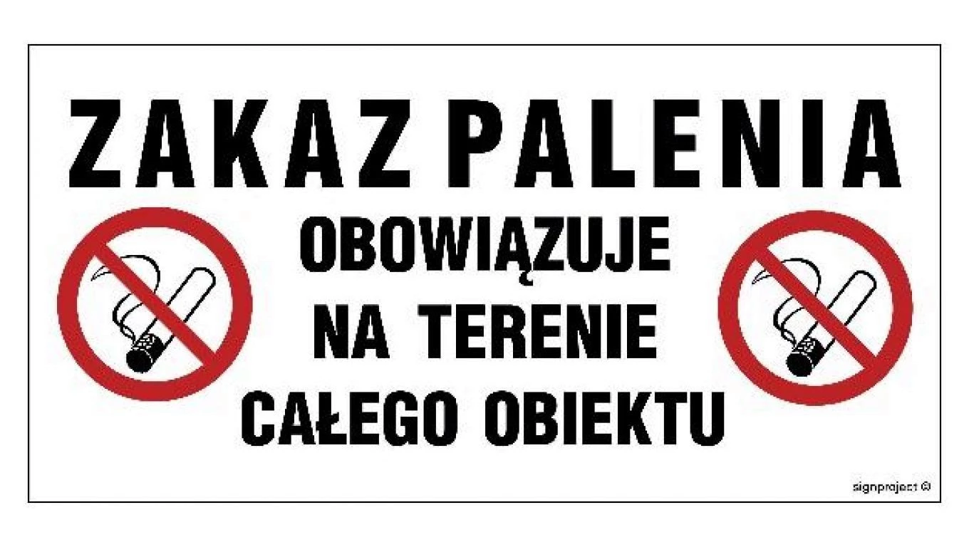 ZNAK - NC129 Zakaz palenia obowiązuje na terenie całego obiektu 60 x 30 cm FN - Folia samoprzylepna