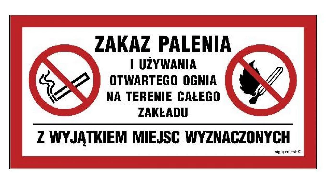 ZNAK - NC139 Zakaz palenia i używania otwartego ognia na terenie całego obiektu z wyjątkiem miejsc wyznaczonych 20 x 10 cm FN -