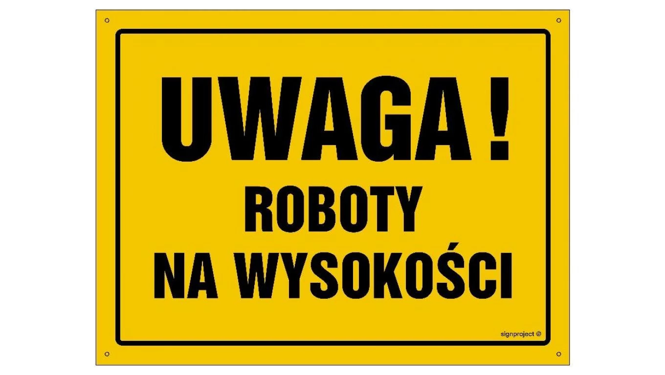 ZNAK - OA004 Uwaga! Roboty na wysokości 45 x 32 cm FN - Folia samoprzylepna