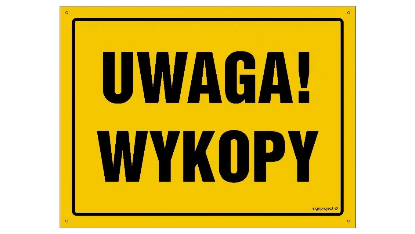 ZNAK - OA005 Uwaga! Wykopy 60 x 43 cm FN - Folia samoprzylepna