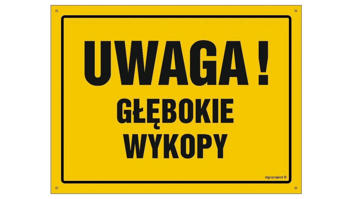 ZNAK - OA007 Uwaga! Głębokie wykopy 30 x 21,5 cm FN - Folia samoprzylepna