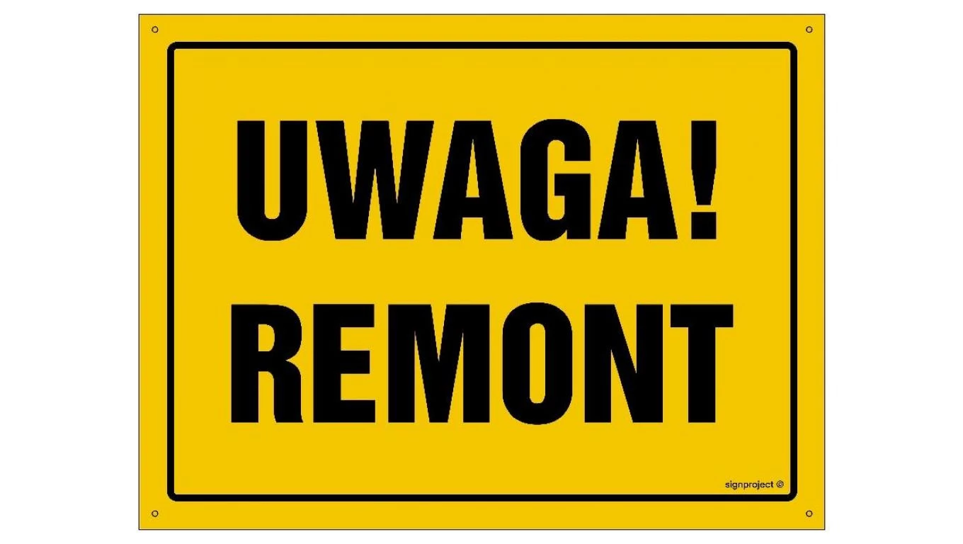 ZNAK - OA010 Uwaga! Remont 45 x 32 cm FN - Folia samoprzylepna