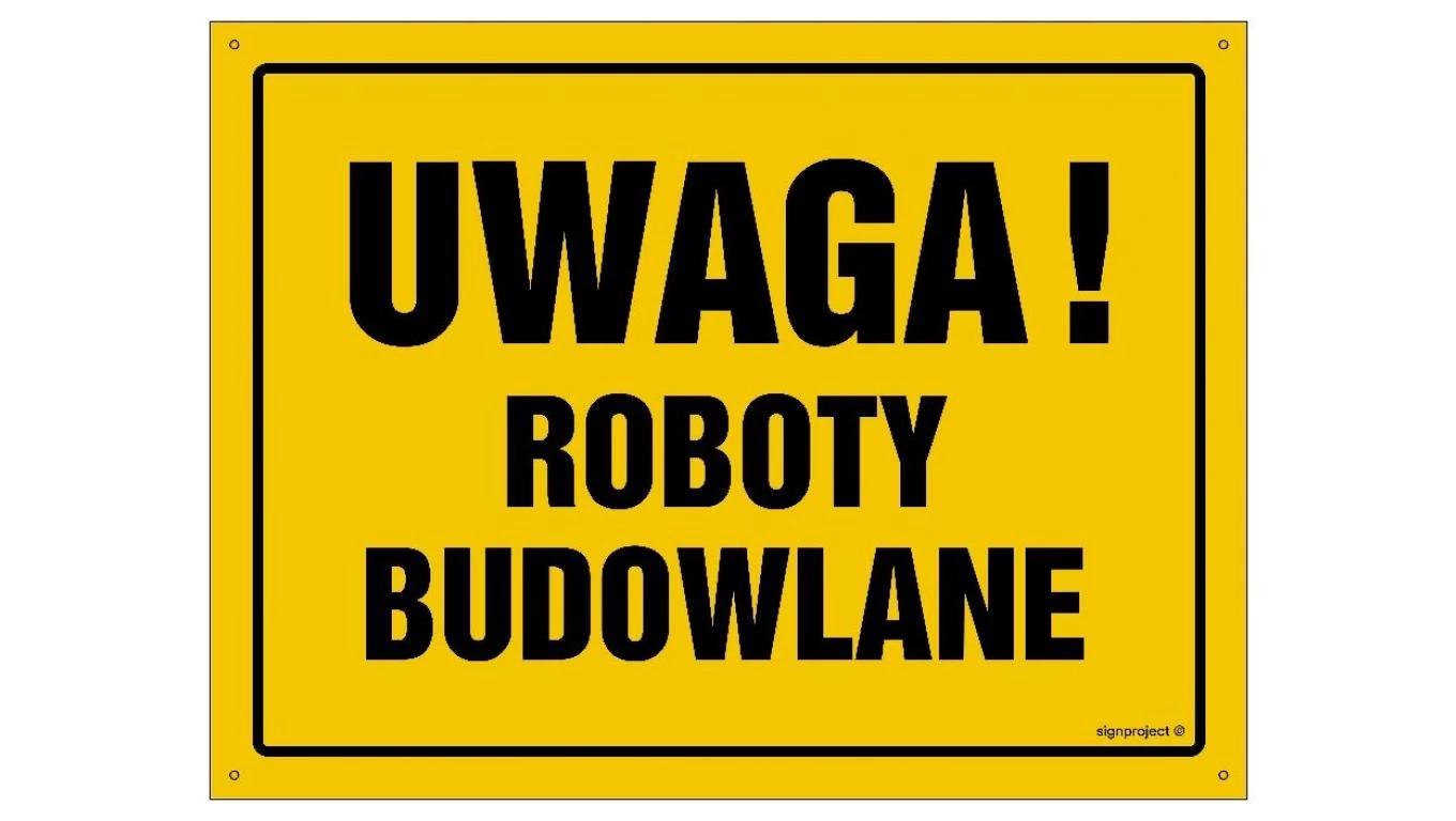 ZNAK - OA015 Uwaga! Roboty budowlane 35 x 25 cm BN - Płyta żółta 0,6mm