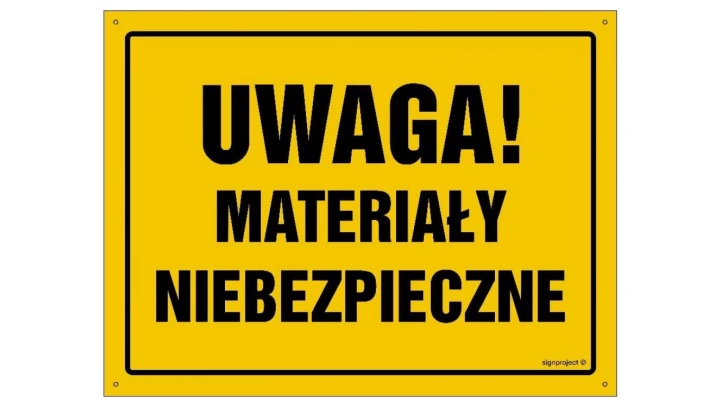 ZNAK - OA023 Uwaga! Materiały niebezpieczne 60 x 43 cm FN - Folia samoprzylepna