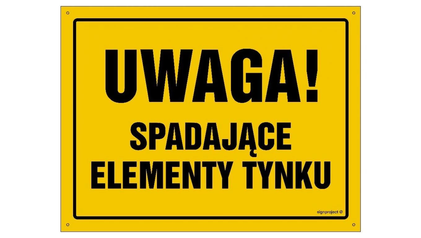 ZNAK - OA028 Uwaga! W czasie pracy suwnicy przejście zabronione 80 x 57 cm BN - Płyta żółta 0,6mm