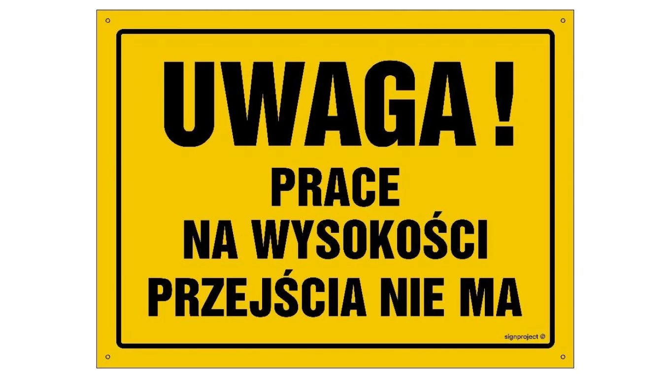 ZNAK - OA040 Uwaga! Prace na wysokości - przejścia nie ma 60 x 43 cm FN - Folia samoprzylepna