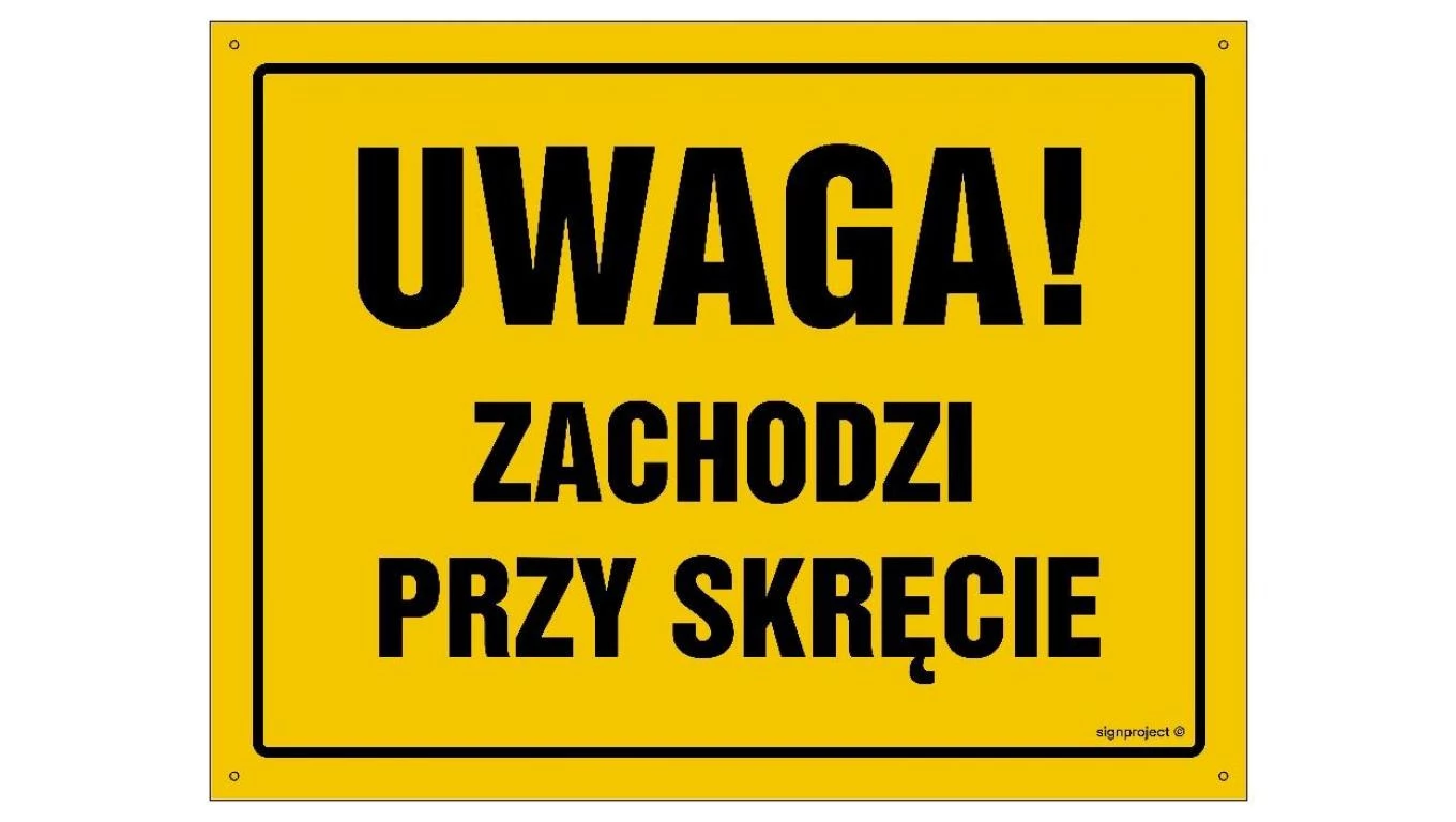 ZNAK - OA044 Uwaga! Zachodzi przy skręcie 45 x 32 cm BN - Płyta żółta 0,6mm