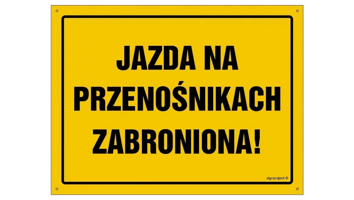 ZNAK - OA045 Jazda na przenośnikach zabroniona 60 x 43 cm FN - Folia samoprzylepna