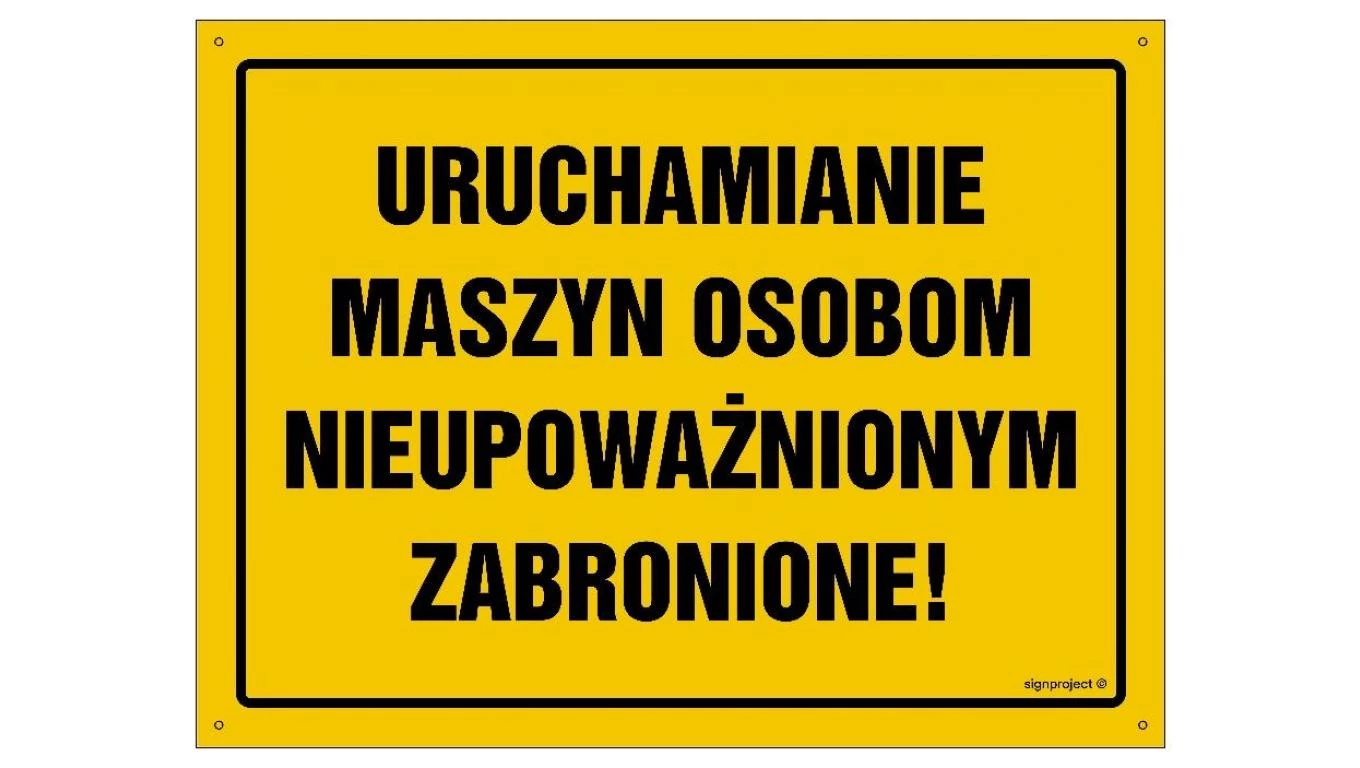 ZNAK - OA051 Uruchamianie maszyn osobom nieupoważnionym zabronione! 60 x 43 cm BN - Płyta żółta 0,6mm