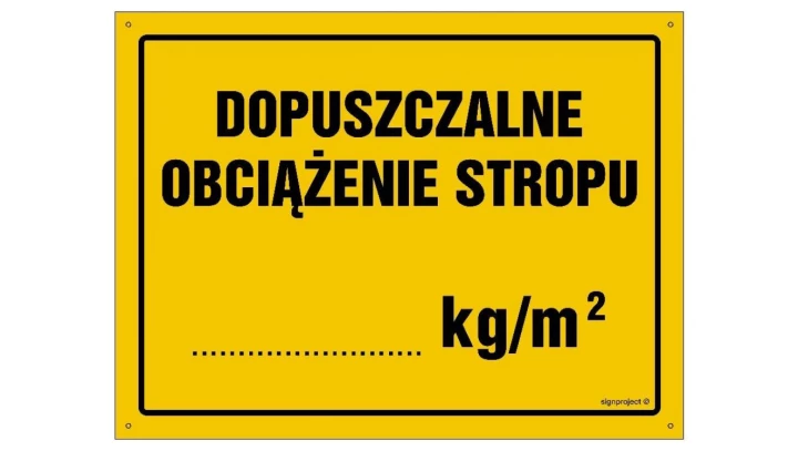 ZNAK - OA056 Dopuszczalne obciążenie stropu 35 x 25 cm BN - Płyta żółta 0,6mm