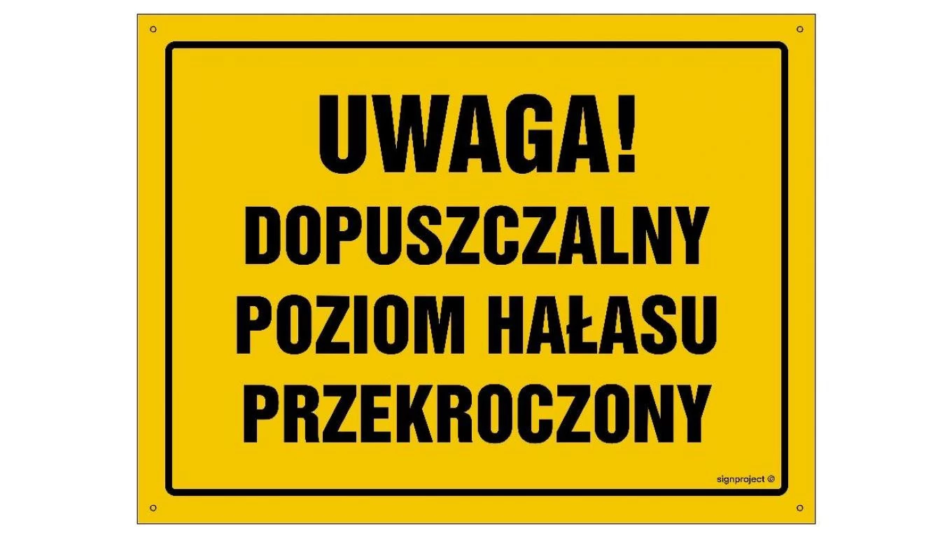ZNAK - OA060 Uwaga! Dopuszczalny poziom hałasu przekroczony 30 x 21,5 cm FN - Folia samoprzylepna