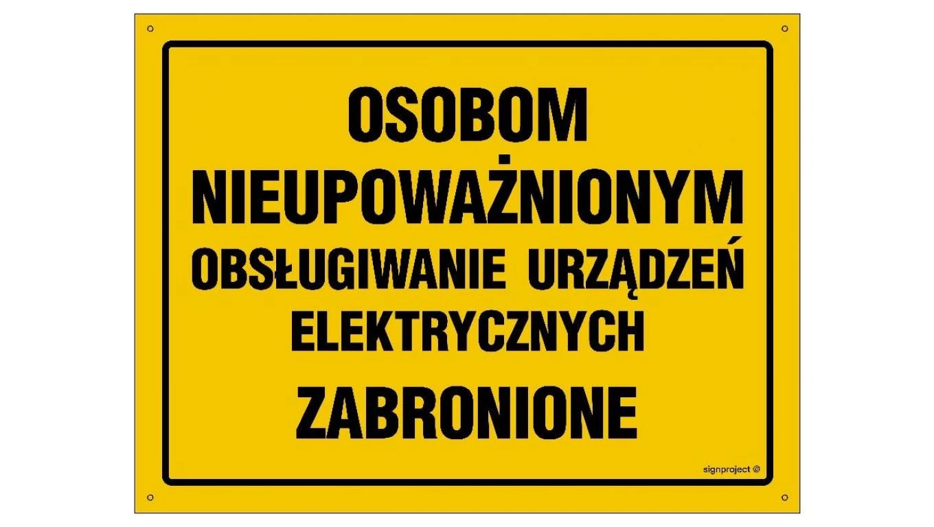 ZNAK - OA062 Osobom nieupoważnionym obsługiwanie urządzeń elektrycznych zabronion 60 x 43 cm BN - Płyta żółta 0,6mm