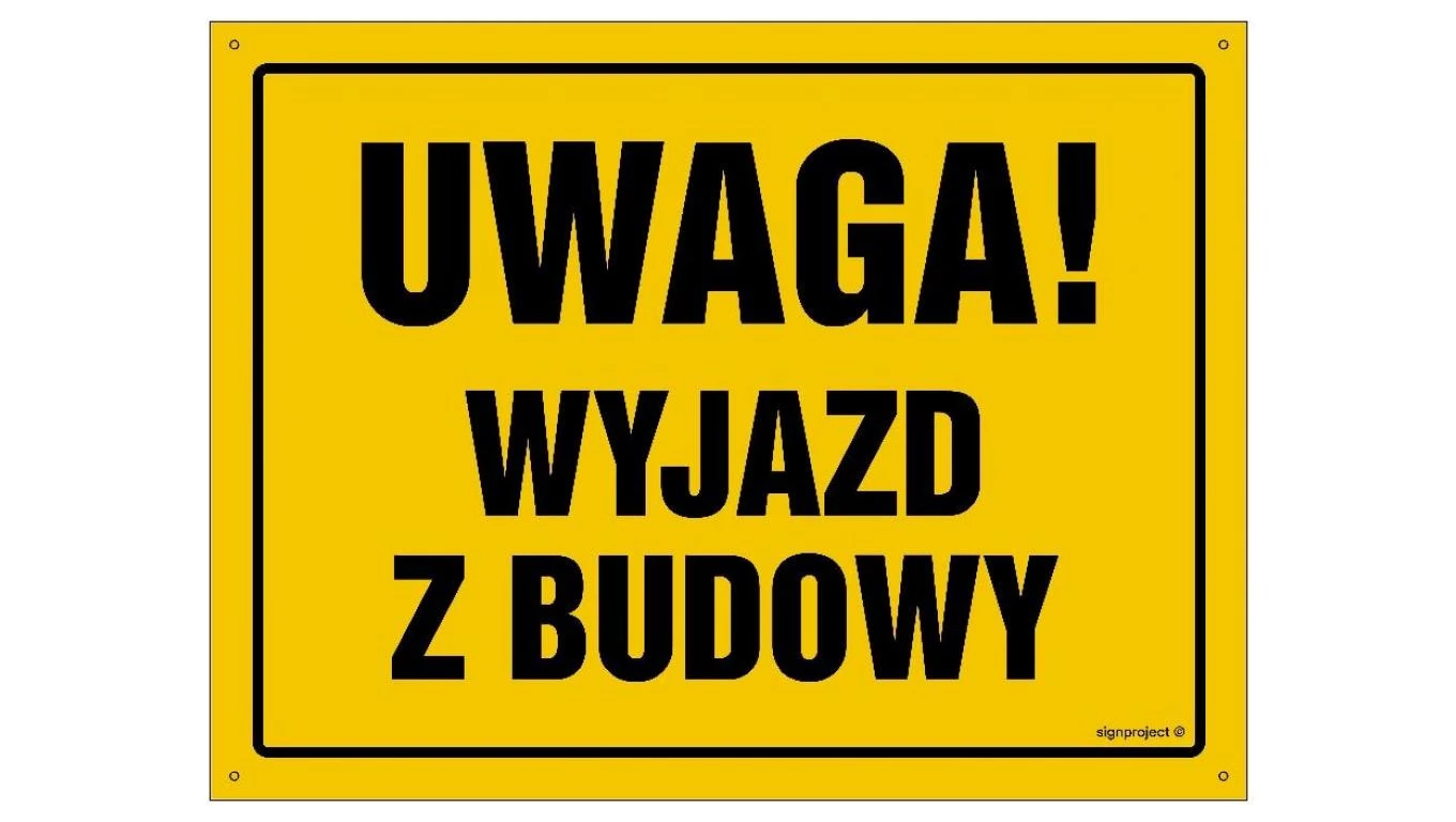 ZNAK - OA090 Uwaga! Wyjazd z budowy 60 x 43 cm BN - Płyta żółta 0,6mm