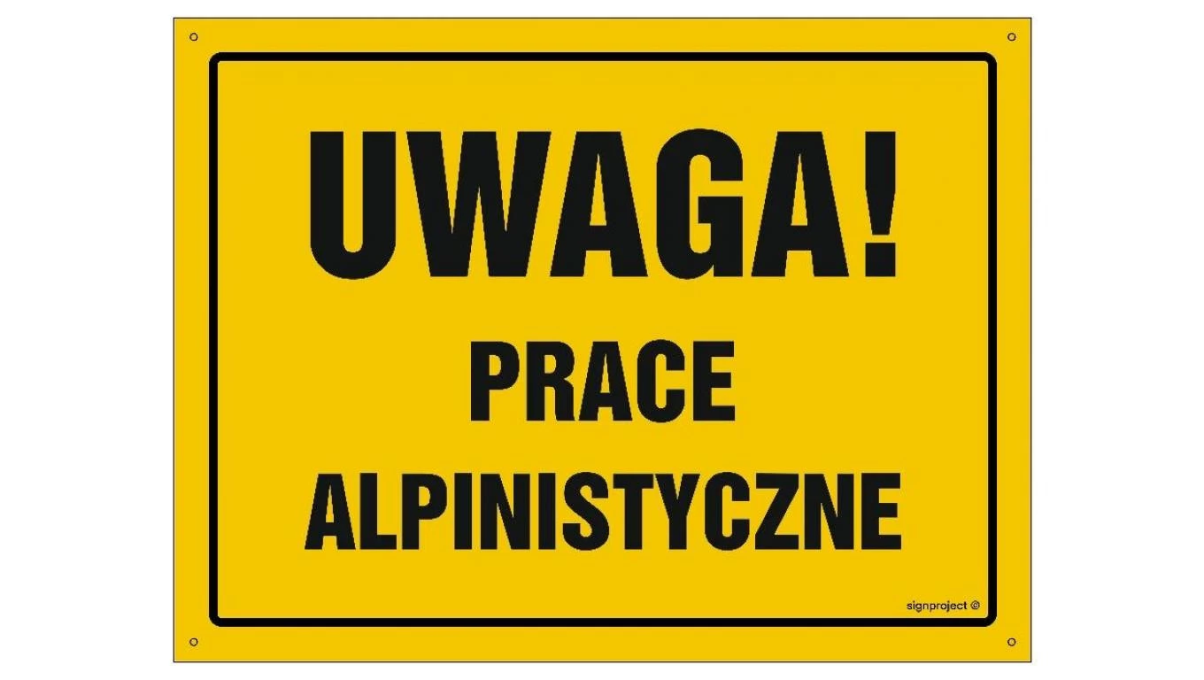 ZNAK - OA101 Uwaga! Prace alpinistyczne 30 x 21,5 cm FN - Folia samoprzylepna