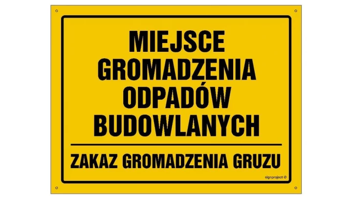 ZNAK - OA112 Miejsce gromadzenia odpadów budowlanych zakaz gromadzenia gruzu 60 x 43 cm BN - Płyta żółta 0,6mm