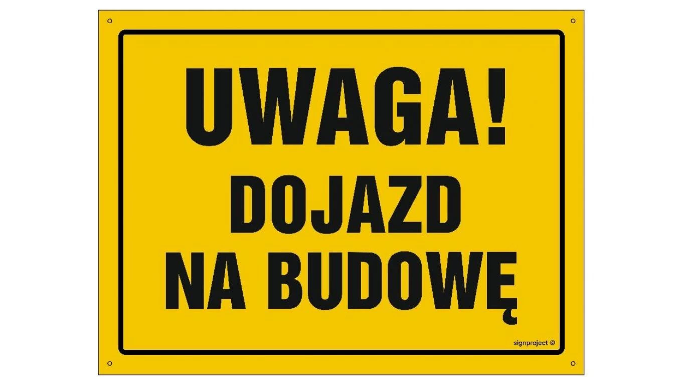 ZNAK - OA119 Uwaga! Dojazd na budowę 45 x 32 cm FN - Folia samoprzylepna