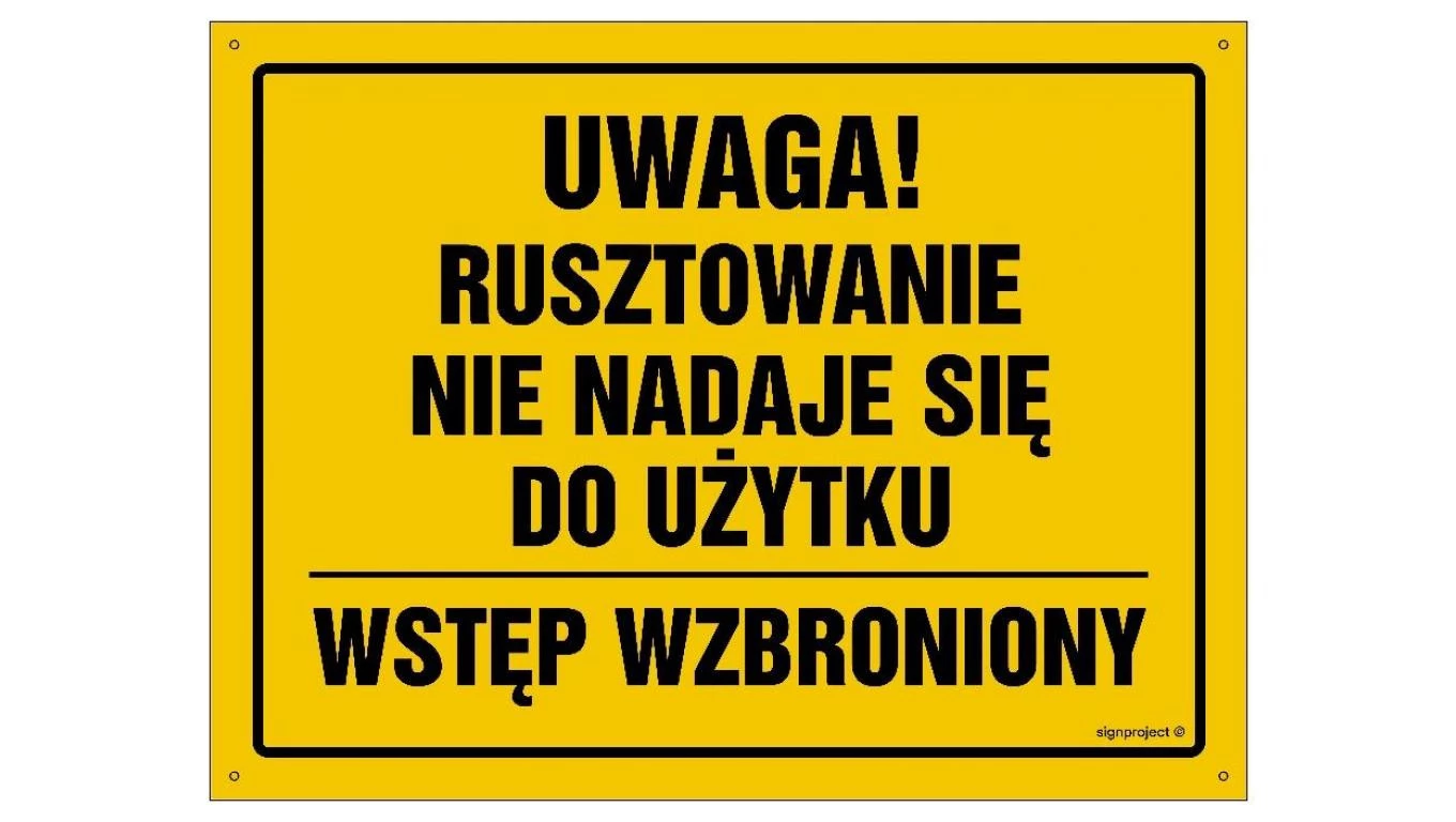 ZNAK - OA144 Uwaga! Rusztowanie nie nadaje się do użytku Wstęp wzbroniony 30 x 21,5 cm FN - Folia samoprzylepna