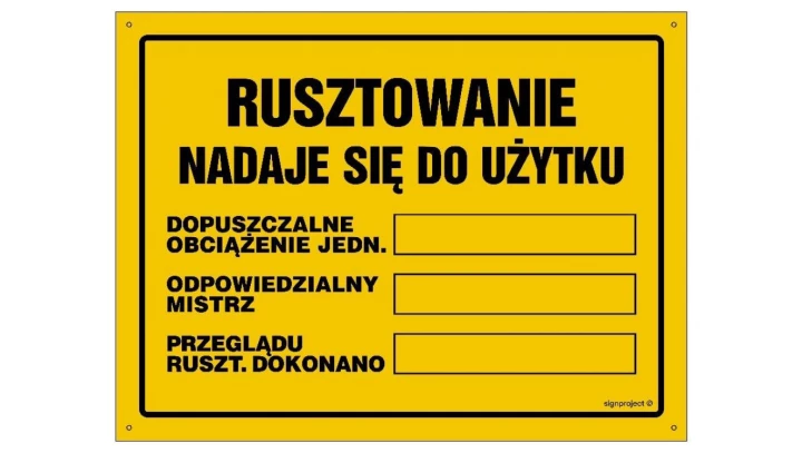 ZNAK - OA146 Rusztowanie nadaje się do użytku ... 45 x 32 cm FN - Folia samoprzylepna